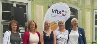 Gemeinsam mit der Leiterin der Elsterwerdaer Stadtbibliothek, Frau Katharina Czyply, gratulierte Bürgermeisterin Anja Heinrich dem Grundbildungszentrum Elsterwerda, insbesondere den Mitarbeiterinnen Lisa Heimann und Birgit Teichmann, sowie der Kreisvolkshochschule Elbe-Elster unter der Leitung von Andrea Hähnlein und der langjährigen Koordinatorin Sabine Rau zum 10 jährigen Jubiläum.
