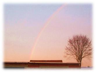Welch ein großes Glück! Wir schauen nach dem Frühstück aus dem Fenster, um den tollen Sonnenaufgang zu bestaunen und entdecken einen riesigen, wunderschönen Regenbogen! Er reicht von einem Fenster zum anderen. Wie eindrucksvoll und super spannend!