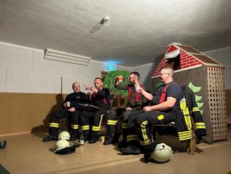 Am 13. Dezember trugen viele Kita-Kinder Feuerwehrkostüme und freuten sich sehr über den Besuch von 4 Kameraden der Freiwilligen Feuerwehr Fraureuth. Nach einer kleinen Einstimmung durch Peter Schmidt lasen die Feuerwehrmänner die Geschichte „Bei der Feuerwehr wird der Kaffee kalt“. Gespannt hörten alle zu und konnten im Anschluss der Geschichte schon einige Fragen zum Beruf des Feuerwehrmannes der Kameraden gut beantworten. Natürlich gab es zu Beginn der Lesung einen Kaffee für die Feuerwehr. Der war allerdings zum Ende hin kalt, was die Männer gern in Kauf nahmen und weil sie, wie die Geschichte schon verrät, kalten Kaffee gewohnt sind. Wir möchten für die gelungene Vorstellung an dieser Stelle noch einmal ein großes „Danke“ übermitteln!