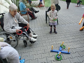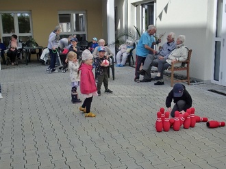 Dieser beinhaltet u. a. auch die Teilnahme unserer Kinder an verschiedenen Angeboten des Hauses. So finden an diesen Besuchstagen in ganz unterschiedlicher Weise die Bewohner und Kinder Möglichkeiten des Kennenlernens und gestalten die gemeinsame Zeit. Ob Malen, Vorlesen oder sportliche Aktivitäten – das Programm ist abwechslungsreich. Je nach Interesse, Neigung oder eigener Befindlichkeit findet sich für jeden, der es möchte, ein Anlass zum Mitmachen.