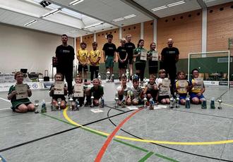 Pokalturnier 100 Jahre RV Edelweiss Fraureuth U11/15 am 21.09.2024: Gelungene Generalprobe für die große Jubiläumsveranstaltung im November! Am Samstag schickte der RVE sage und schreibe 7 Nachwuchsmannschaften in das Pokalturnier der U11/15. Den Anfang machten bei den U15 ab 10:00 Uhr das Duo Lukas Heuschkel/Carlo Zinner und Maria Kaiser/Bruno Holzmüller. Gegen die Teams aus Zscherben, Bärenwalde und Ehrenberg galt es sich zu beweisen. Dies gelang Lukas und Carlo am besten. Mit Platz 3 beendeten die beiden Fraureuther das Turnier auf dem Siegerpodest. Der Tagessieg ging ungeschlagen an die Mannschaft aus Zscherben. Zweiter wurde Bärenwalde. Für Maria und Bruno blieb leider nur der 5. Platz hinter dem Team aus Ehrenberg übrig. Beide waren allerdings als U13-Mannschaft bei der U15 gestartet. Bei den jüngsten Teams in der U11, die ab 13:00 Uhr an den Start gingen, waren 2 Fraureuther Spieler dabei, die ihr erstes Turnier bestritten. Das Augenmerk lag beim RVE so viel wie möglich jungen Talenten Spielzeit unter Turnierbedingungen zu ermöglichen. Umso erfreulicher war der überraschende Tagessieg von Fraureuth 4 mit dem Spielergespann Emil Köhler und Emilian/Niklas Päsler. In einem packenden Finalspiel gegen Eula, dass nach der regulären Spielzeit und Verlängerung immer noch Unentschieden stand, musste die Entscheidung im 4-Meter Schießen fallen. Emil Köhler behielt die Nerven und setzte den goldenen Schuss zum Sieg. Mit Fraureuth 2 dem einzigen Mädchenteam fand sich noch eine Mannschaft des RVE auf dem Siegerpodest ein. Ein starker 3. Platz wurde es für Merle Teichmann/Anika Hupfer am Ende. Einen kleinen Dämpfer musste Fraureuth 1 verkraften. Die favorisierten Noah Teichmann/Alois Hupfer machten zu viele kleine Fehler und nutzten ihre Torchancen zu selten. So blieb am Ende nur Tabellenplatz 5 hinter der Mannschaft aus Langenleuba übrig. Fraureuth 3 Bruno Pregler/Artur Holzmüller erreichten Platz 6. Fraureuth 5 mit Gustav Lenk/Elisabeth Kaiser zeigten für ihr erstes gemeinsames Turnier eine starke Leistung die sich leider nicht durch die Endplatzierung mit Platz 8 wiederspiegelte. Zwischen den beiden RVE-Teams reihte sich die Mannschaft aus Ehrenberg auf Platz 7 ein. Ein großes Dankeschön geht an alle helfende Hände, Sponsoren und Unterstützer die so eine Veranstaltung ermöglichen. #RehaRadCentrum #SLF #Sparkasse Zwickau #Stadtwerke Werdau #DM Markt Fraureuth #ET Pregler.