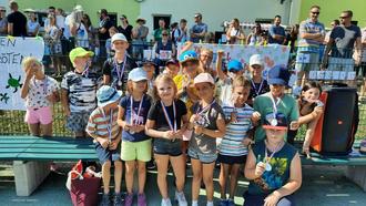 Den dritten Platz unseres Gruppenwettbewerbs belegte die Klasse 4a. Die Klasse 3a erkämpfte sich den zweiten Platz und über einen hervorragenden ersten Platz konnten sich die Kinder der Klasse 4b freuen. Diese drei Klassen feierten ihre tollen Gruppenleistungen mit prall gefüllten Vespertüten sowie den entsprechenden Medaillen. Die Kinder der anderen Klassenstufen gingen natürlich nicht mit leeren Händen vom Platz. Auch sie bekamen alle einen Gruppenpreis mit vielen Leckereien zum Vespern überreicht. Am Ende der Siegerehrung erhielten alle Hortkinder noch einen Gutschein für eine Kugel Eis beim Eismobil von Herrn Heydel.