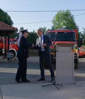 Der Bürgermeister wünscht Wehrleiter Michael Böttcher und seiner Mannschaft in Beiersdorf stets unfallfreie Einsätze und Fahrten.