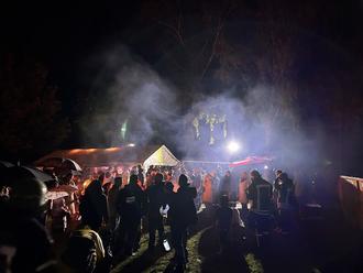 In diesem Jahr war unser Festtag von herbstlichem Wetter geprägt. Umso mehr freuten wir uns über die vielen Kinder und Erwachsenen, die dem Wetter trotzten und mit uns einen schönen Abend verbrachten. Um 19:00 Uhr trafen sich Groß und Klein auf dem Parkplatz unterhalb der Einrichtung. Unsere Freiwillige Feuerwehr Fraureuth durfte natürlich nicht fehlen und begleitete den Umzug mit Blaulicht und Musik. Am Ende des Umzugs fanden sich alle auf dem Sportplatzgelände neben unserer Kita ein. Dort empfingen wir unsere Gäste in einem Festzelt, worin Sitzmöglichkeiten sowie warme und kalte Getränke für Gemütlichkeit sorgten. Zur Stärkung gab es die schmackhaften Roster der Fleischerei Windisch sowie Wiener, Speckfettbrote und Brote mit Hackepeter. Die kleinen Gäste wärmten sich an einer großen Feuerschale und rösteten sich dabei Marshmallows und Stockbrot. Unsere Grillmeister, welche sich aus Vätern und Großvätern unserer Regenbogenkinder zusammenstellten, hatten zeitweise mächtig viel zu tun.