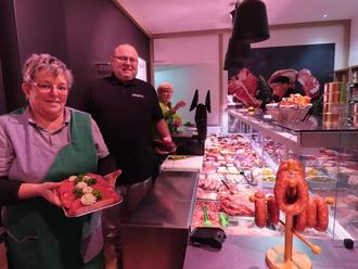Foto: Endlich geschafft: Verkäuferin Antje Zimmermann und Fleischermeister Olaf Uhlig freuen sich sichtlich, im neuen Laden endlich wieder alle Produkte anbieten zu können