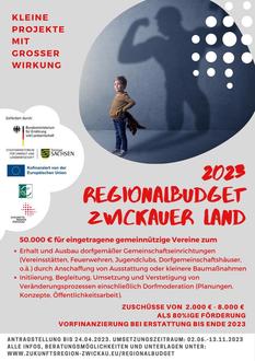 Aufrufe und Antragsunterlagen sind ab sofort verfügbar unter: https://www.zukunftsregion-zwickau.eu/regionalbudget/.