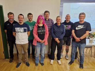 Die neugewählten Verantwortungsträger des VfB Eintracht von links: Reiner Schumann (Vorsitzender Verwaltung), Armin Sonntag (Vorsitzender Sport), Willy Schumann, Jana Schlichthar, Steffen Sorber (Vorsitzender Technik), Antje Creutziger, Sascha Beckmann (Vorsitzender Öffentlichkeit), Matthias Jugel