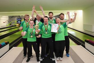 Der VfB Eintracht Fraureuth hat das DCU-Pokal-Finale gewonnen und feiert damit den größten Erfolg der Vereinsgeschichte. In einem an Dramatik kaum zu überbietenden Final-Six gewann die Eintracht mit 1918 getroffenen Kegeln über 4 x 100 Wurf vor dem von Beginn an führenden SV „Fahner Höhe“ Gierstädt, der 1874 Treffer erzielte. Allerdings legten die Fraureuther einen klassischen Fehlstart hin. Pirmin Sorber fand in keinster Weise ins Spiel, so dass Coach Christian Schumann bereits nach 21 Kugeln die Reißleine zog und Lenny Hilbig einwechselte. Dieser brauchte zwar auch etwas, um zu sich zu finden, baute aber mit 242 Holz auf der zweiten Bahn schon wieder etwas vom Rückstand (teilweise knapp 70 Kegel) ab. 434 Zähler konnten für beide verbucht werden. Anton Heß hatte die Gierstädter hier mit 497 Treffern schon komfortabel in Führung gebracht. Im zweiten, durchweg hochkarätigen Durchgang preschte dann Ralf Wolfring nach vorn. Mit 255 Treffern auf der zweiten Bahn katapultierte er sich auf den Bestwert dieser Runde von 484 Holz. Der Rückstand zur Halbzeit auf Platz 1 war mit 56 Kegeln zwar immer noch sehr groß, doch hatte man sich nun schon auf Rang 4 verbessert, einen Punkt hinter dem Dritten. Der erst im letzten Moment ins Team gerutschte Armin Sonntag begann dann mit einer 250er Bahn und überrollte schier das Feld. Vor den letzten 25 Wurf war die Eintracht nur noch 11 Kegel zurück, doch schnell wendete sich das Blatt wieder. Während beim Fraureuther Käpt´n nichts mehr zusammen lief, erzielte Richard Heß für die Fahner Höhe zweimal zwei Neuner in Folge und packte somit wieder 37 Punkte zwischen die beiden nunmehr führenden Teams.