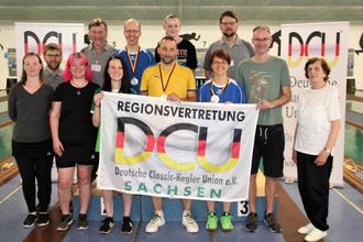 Bei den Frauen erreichte Isabel Seifert (VfB Eintracht) mit 394 Treffern als Zwölfte das Finale. Dort traf sie dann 383 Kegel und bestätigte mit 777 Holz ihre Platzierung. Jana Schlichthar (292) wurde bei ihrer ersten DM-Teilnahme Fünfzehnte. Allerdings zollten ihr trotz des etwas mäßig klingenden Resultates alle Teilnehmer größten Respekt. Wenige Tage nach ihrer Qualifikation brach sie sich einen Finger an der Wurfhand. Innerhalb von nur drei Wochen stellte sie sich auf die linke Hand um, was viele für unmöglich hielten. Unter diesen Umständen erzielte sie ein erstaunliches Ergebnis und wird mit dieser Geschichte in die Annalen der Meisterschaften eingehen. Nadine Leiott (KSV Eska Chemnitz) konnte mit insgesamt 948 Treffern ihren Titel vom Vorjahr erfolgreich verteidigen und holte somit einen zusätzlichen Startplatz für Sachsen im kommenden Jahr. Außerdem gab es bei den Männern einen sächsischen Doppelsieg durch Veit Tänzer (KSV Bad Düben), der über 2 x 200 Wurf 2060 Kegel traf, und Alexander Leiott (Eska Chemnitz / 2003 Kegel).