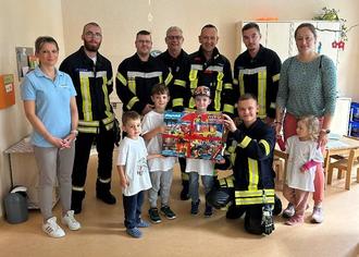 Auf unsere Freiwillige Feuerwehr Fraureuth mussten wir trotz der „Indoor-Veranstaltung“ nicht verzichten. Mit Blaulicht und Sirene begrüßten uns die Kameraden und überreichten uns ein großes Löschfahrzeug von Playmobil – passend zu dem Playmobil-Gerätehaus, welches wir ebenfalls von der Feuerwehr vor ein paar Jahren bekamen. Die Kinder haben sich sehr darüber gefreut und fuhren inzwischen ihre ersten „Einsätze“ mit dem Fahrzeug.