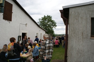 Es kamen viele interessante Gespräche zwischen mehreren Generationen zustande, die sowohl ehemalige Kinder als auch ehemalige Mitarbeiter der Kita untereinander führten. Es gab viele Glückwünsche und einen regen Austausch zwischen allen Beteiligten. Dank des gegen allen Erwartungen trockenen Wetters, konnten sich die Kinder auch im Außengelände der Kita austoben, während sich die Erwachsenen bei Kaffee und Kuchen oder den immer gern angenommenen Roster und Wiegebraten der Fleischerei Windisch, über Erfahrungen und Rückblicke der vergangenen Jahre austauschten. Auch für musikalische Unterhaltung wurde dank Familie Löffler bestens gesorgt.