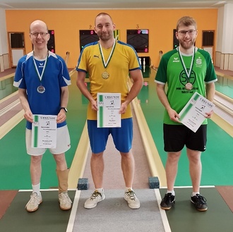 Bei den Männern gewann Willy Schumann Bronze über 2 x 200 Wurf und wird damit ebenfalls die sächsischen Farben zu den Deutschen vertreten. Bis zu den beiden Topspielern und amtierenden deutschen Meister bzw. Vizemeister Veit Tänzer (KSV Bad Düben / 2071) sowie Alexander Leiott (KSV Eska Chemnitz / 2024) ist für den Fraureuther Bundesligaspieler über 2 x 200 Wurf zwar noch etwas Luft. Mit seinen 1879 Treffern konnte er die folgende Konkurrenz jedoch deutlich distanzieren. Christian Schumann wurde hier mit 1745 Treffern Achter.