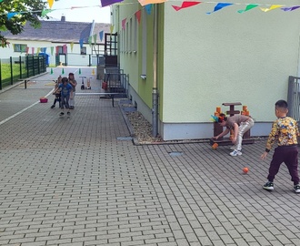 Unser Fest stand unter dem Motto: „Zu Besuch bei Yakari“. Viele Kinder kamen passend verkleidet, was für eine besonders bunte und fröhliche Atmosphäre sorgte. Mit Musik und Tanz eröffneten wir unser Fest im liebevoll geschmückten Garten. An verschiedenen Spielstationen konnten die Kinder ihre Kräfte messen und ihre Geschicklichkeit unter Beweis stellen. Angebote wie zum Beispiel Dosenwerfen, Hüpfkästchen, ein Bewegungsparcours sowie Pfeil- und Bogenschießen luden zum Mitmachen ein.