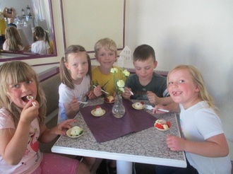 Natürlich erkundeten wir auch die Gemeinde Fraureuth ganz genau. Wir erwanderten die umliegenden Feldwege und Spielplätze, waren im Dahliencenter Fraureuth einkaufen und bedankten uns beim Team der Jet-Tankstelle persönlich für die Hefte zur Verkehrserziehung. Auch die Besuche der Schule, des Hortes, der Fraureuther Kirche mit Orgelkonzert, der Feuerwehr, der Eisdiele, der Porzellanausstellung sowie der Besuch des Bürgermeisters Herrn Topitsch sind uns immer noch in sehr guter Erinnerung.