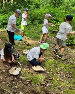 Bei einer Traktorfahrt auf dem Feld hatten die Kinder viel Spaß und hatten gleichzeitig die Möglichkeit, das Leben eines Bauern näher kennenzulernen. Da frische Luft hungrig macht, gab es zum Mittagessen Nuggets mit Kartoffelbrei und Soße. Das war sehr lecker. Gestärkt verabschiedeten sich die Kinder von der Familie Jakob. Im angrenzenden Wald wartete bereits das nächste Highlight auf die „Glühwürmchengruppe“, eine Waldrallye. Nachdem die Rätsel gelöst und der Schatz gefunden wurden, stand auf einmal eine Pferdekutsche am Waldrand. Die Kinder, vor allem die Mädchen aus der Gruppe, bekamen große Augen und strahlten über das ganze Gesicht, als sie in die Kutsche einsteigen durften. Der Kremser brachte uns durch den Wald, direkt zur Gartenanlage „Erholung“, wo die Kinder gemeinsam mit ihren Eltern einen schönen Nachmittag mit vielen Überraschungen verbrachten.