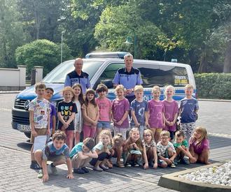Vom 08.- 10. Juli 2024 haben wir bei heißem Sommerwetter Besuch und zwar den lustigsten Mitarbeiter der Polizei, POLDI mit Herrn Lange und Herrn Weber. Die beiden Polizisten erzählten uns sehr interessant von den Aufgaben, Arbeitsbereichen- und Arbeitsmitteln der Polizei und stellten fest, unsere ABC Kinder wissen schon sehr viel. Das merkt auch POLDI und kommt aus seinem Schlafplatz. Er erzählt uns, wie er Mitarbeiter der Polizei wurde und strapaziert unsere Lachmuskeln. Die folgenden Tage geht es um sicheres Verhalten im Straßenverkehr, Verkehrszeichen sowie ihre Bedeutung erkennen und die erste Hausaufgabe steht an, die selbstverständlich mit großem Fleiß erledigt wird. Zum Abschluss erhalten die ABC Kinder zur bestandenen Prüfung einen kleinen Pass, wo vermerkt ist, was sie schon alles gelernt haben.