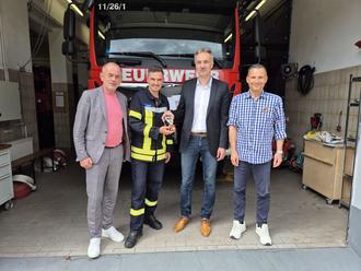 Bürgermeister Matthias Topitsch, Ortswehrleiter Patrick Päsler sowie Hauptamtsleiter Robby Safferthal, der zuständig für die Feuerwehren ist, konnten das Gerät von Herrn Lieberwirth, stellvertretend für die Firma iNetz, entgegen nehmen.