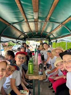 Für die Schulanfänger standen nach der Fahrt mit der Pferdekutsche eine Hüpfburg und der liebevoll geschmückte Zuckertütenbaum im Projektgarten bereit. Am Abend fand eine Nachtwanderung mit Taschenlampen und anschließend die Übernachtung im Kindergarten mit Nachtduschen und Kuscheltierschlacht auf dem bunten Programm.
