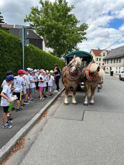 Unter anderem gab es eine „Nonsens“- Olympiade mit lustigen Wettspielen wie z. B. Kirschkernweitspucken und Bobby-Car-Wettrennen im Park sowie eine Kremserfahrt durch Fraureuth. Das gemeinsame Abendessen mit den Eltern der ABC-Kinder war für alle Beteiligten eine willkommene Möglichkeit, sich über die vergangene Kita- und die bevorstehende Schulzeit noch einmal auszutauschen.