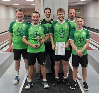Der VfB Eintracht Fraureuth verabschiedete sich mit einem Titel in die – sportliche - Sommerpause. Beim Abschlussturnier der 100-Wurf-Sachsenliga traf der Bundesligist über 6 x 100 Wurf satte 2762 Kegel und gewann damit das Turnier und den Wettbewerb. Spannung war schon vor dem Match angesagt, denn nach den bisherigen drei Spieltagen lagen Gera (12 Punkte), Stauchitz und Fraureuth (je 11,5) nur um einen halben Punkt getrennt an der Tabellenspitze. Der Fraureuther Ersatzmann Carsten Bauer fegte dann gleich im ersten Durchgang 506 Kegel von der Platte und schickte sein Team schon früh in die Erfolgsspur. Pirmin Sorber (431) und Lenny Hilbig (435) traten dann zwar etwas auf die Bremse, ohne jedoch den Vorsprung ernsthaft zu gefährden. In der zweiten Spielhälfte sicherten schließlich Willy Schumann (469), Reiner Schumann (459) und Armin Sonntag (462) mit grundsoliden Leistungen den Titel.