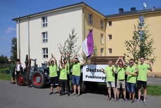 Mit einem Traktorkorso durch Fraureuth feierte der VfB Eintracht am Wochenende seine Männermannschaft. Diese hatte im Mai mit dem Gewinn des DCU-Pokals für den größten Erfolg des Kegelsports im Ort auf nationaler Ebene gesorgt. Traditionell werden im Sommer immer alle sportlichen Erfolge während einer Auszeichnungsfeier gewürdigt. Von der Vereinsmeisterschaft angefangen über Kreis, Bezirk und Land bis hin zu länderübergreifenden oder nationalen Erfolgen. Neben den beiden Ehrenmitgliedern des Vereins Edgar Raab und Dr. Frank Schlegel waren als Ehrengäste Swen Schindler, der Geschäftsführer von Premiumsponsor WIN aus Zwickau, Andreas Eismann vom Architekturbüro Neubauer & Eismann sowie Ortschaftsratsvorsitzender Peter Schmidt und Robby Safferthal als Vertreter des Fraureuther Bürgermeisters anwesend.