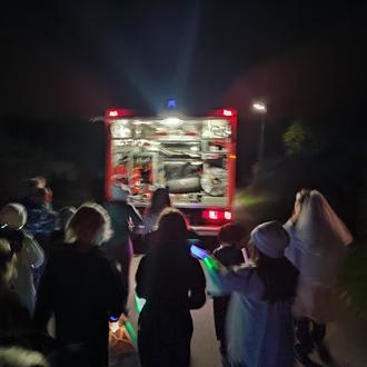Viele Besucher kamen in gruseligen Kostümen. Eine Jury premierte die schönsten Kostüme der Kinder. Dabei gab es zwei tolle Preise zu gewinnen und Gummibärchen für alle. Im Anschluss fand der Fackelumzug statt. Zahlreiche Kinder, Eltern und Großeltern, mit leuchtenden Laternen und brennenden Fackeln gerüstet, nahmen daran teil. Dem vorausfahrendem blau blinkendem Feuerwehrfahrzeug folgte ein Lichtermeer. Wieder am Gerätehaus angekommen, startete kurze Zeit später das „Kinderkino“.