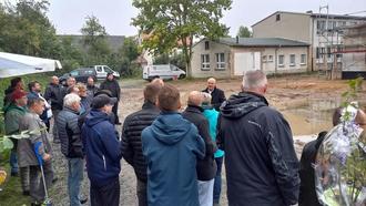 Demzufolge herrschte bei der Besichtigung des Rohbaues auch sehr gute Laune unter den Teilnehmern, und mit großem Interesse besichtigte man die inzwischen greifbare Kubatur des Gebäudes. Es lässt schon sehr viel erahnen, und ich kann mir die Erwartungshaltung und Vorfreude in Aussicht auf den Eröffnungstermin so richtig ausmalen. Vielleicht greift das KITA-Team ja die Idee der Falkenhainer auf und macht am Tag der Inbetriebnahme gemeinsam mit den Kiddies einen letzten Umzugsgang mit dem Bollerwagen, um das letzte Wichtige mit in die neue Einrichtung mitzunehmen. Für die kleinen Menschen wird das ein großer Tag. Wir werden uns das ansehen.