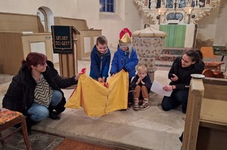 „... möcht' ich manchmal sein“, sangen die Kinder der Diakonie-Kita „Knirpsenland“ in Meltewitz am 11. November zum Gedenken an Sankt Martin. Und sie ließen Taten folgen: Erst zeigten sie in einem Anspiel, wie der Soldat Martin einen Mann mithilfe seines geteilten Mantels vor dem Erfrieren rettete. Danach teilten sie mit allen Gästen der Andacht in der Meltewitzer Kirche die leckeren Martinsbrötchen. Diese hatten sie zuvor in der Kita gemeinsam mit ihren Erzieherinnen gebacken.