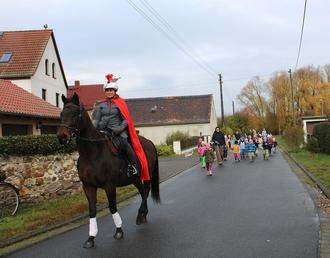 Auf dem Pferd kam Sankt Martin angeritten und erzählte uns die spannende Geschichte aus seinem Leben. Vielen lieben Dank dafür an Franziska vom Tiersportverein Team Horse e.V., gegründet im November 2024. Das war so toll. Die Kinder liefen stolz mit ihren gebastelten Gänsen hinter Sankt Martin“ auf seinem Pferd her. Danach wurden die leckeren Martinsgänse geteilt.
