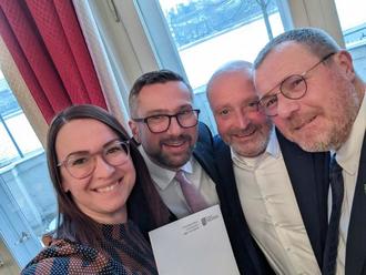 Dresden, 17.01.2024. Die Wurzener Land-Werke Glasfaser GmbH nahm heute in feierlichem Rahmen den Fördermittelbescheid des Freistaates Sachsen für den zukünftigen Gigabitausbau im Wurzener Land entgegen. Staatsminister Martin Dulig persönlich übergab den Bescheid in Höhe von rund 6,5 Mio. Euro an die Geschäftsführung, die sich über die finanzielle Unterstützung für den Ausbau des Glasfasernetzes in Wurzen und den umliegenden Gemeinden freute.