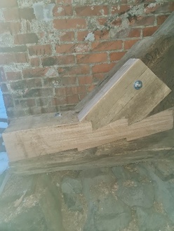 Weniger für die Allgemeinheit erkennbar, aber dafür umso wichtiger für die Standfestigkeit der Mühle, war ein verfaulter, tragender Balken des Mühlenbockes. Doch wie kann man einen Mühlenbock reparieren, wenn obendrauf mal eben mehrere Tonnen Mühle stehen?
