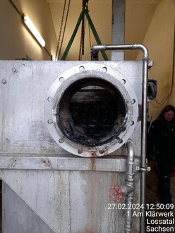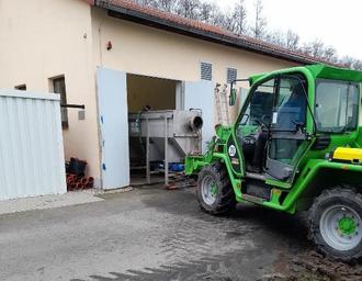 Hierfür wurde zunächst die Schmutzwasserzuleitung gekappt. An einem Tag musste daher das Schmutzwasser mittels Saug- und Spülfahrzeugen direkt aus den Pumpstationen abgefahren werden. Innerhalb eines Tages wurde eine Umleitung mit Handrechen für das Schmutzwasser gebaut, um das häusliche Abwasser wieder zu entsorgen. Mit der Inbetriebnahme der Umleitungsstrecke konnte der Ausbau des Rechen-Sandfang-Kompaktanlage beginnen. Hierbei handelt es sich um Millimeterarbeit, da das Gebäude nur einen eingeschränkten Platz hat und zudem die neue Kompaktanlage an die Bestandsleitungen angepasst werden mussten. Seit dem 11. März ist der Einbau der neuen Anlage abgeschlossen. Nun sind nur noch Restarbeiten wie Austausch des Fußbodens und Malerarbeiten vorzunehmen.