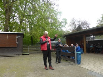 „Müller“ Hübner, vom Heimat- und Mühlenverein Kühnitzsch/Körlitz e. V., startete mit interessanten Ausführungen über die Bockwindmühle an diesem Tag. Interessierte konnten sich bei mehreren Führungen diese Mühle von Innen anschauen und Ihr Wissen über den Arbeitsalltag in einer Mühle erweitern. Es drehten sich sogar die Mühlenflügel. Von dort aus begann die Wanderung auf der Via Regia nach Dornreichenbach über geschichtliche Wege. Herr Hubrich, vom Nachbar- und Traditionsverein Hohburger Berge e. V., erzählte Geschichtliches kurzweilig. Nach ca. 1:15 h und ca. 4 km Wanderweg kamen wir am Ziel an und alle Teilnehmerinnen und Teilnehmer erhielten den 4. Stocknagel. Einige Mitglieder des Tiergeheges Dornreichenbach e. V. erwarteten uns mit einem deftigen Mittagessen, Kaffee und Kuchen und dem erforderlichen „Kühlen Nass“. Herr Löll vom Tiergehege konnte viel Wissenswertes zur Entstehung erzählen. Er lud nach der „Stärkung“ ebenfalls zur Führung ein.