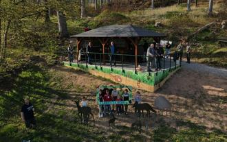Der Jagdvorstand hat für die Umgestaltung am Kirschberg einen neuen Rastplatz geplant, mitgebaut und vor allem durch zwei Lüptitzer Firmen bauen lassen. Durch die Firma Rene Schneider wurden die Geländeeinebnung als Tiefbau, 16m L - Steinmauer mit Gründung, der Wegebau auf 150m Länge, sowie die Fundamente für den Rastplatz errichtet. Für die Wiederherstellung des extrem stark ausgespülten Weges zum Kirschberg wurden 95 Tonnen Mineralgemisch und Erde eingebracht, verbaut und verdichtet. Die Firma Steffen Schneider baute und errichtete aus Holz die halbseitig geschlossene sowie überdachte Schutzhütte mit Sitzbank. Ein herzlicher Dank gilt der Firma Hilliger GmbH Sonderformstückbau aus Thallwitz, mit Ihrem Geschäftsführer Willfried Hilliger, die das Geländer und die Zufahrtsbeschränkung bauten und dem Projekt sponserten. Unsere Hohburger Jäger kümmerten sich um die Beseitigung von Wildwuchs und Totholz sowie die Errichtung der Zufahrtsbeschränkung und des Geländers. Der Jagdvorstand koordinierte alle Maßnahmen, besorgte die Informationstafeln mit viel Wissenswerten über den heimischen Wald, seine Bewohner sowie die Waldnutzung und die Jagd, brachte diese Infotafeln an und kümmerte sich um Randarbeiten.