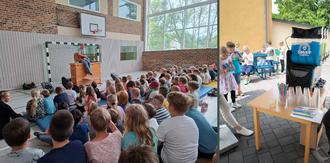 Mit Gitarrenklängen und humorvoller Untermalung zog der Künstler die Erst- bis Viertklässler in seinen Bann.