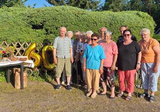 Bei schönstem Sommerwetter und kühlen Getränken wie zum Beispiel Sekt, Bier und Bowle wurde dann gemeinsam in Erinnerungen der letzten Jahrzehnte geschwelgt und sich über die Entwicklung des Vereins ausgetauscht. Die von den Pächtern zusätzlich mitgebrachten Beilagen, wie die ersten diesjährig geernteten Gurken und Tomaten aus den eigenen Gärten sowie selbstgemachter Kartoffel- und Nudelsalat bereicherten das Grill-Buffet.