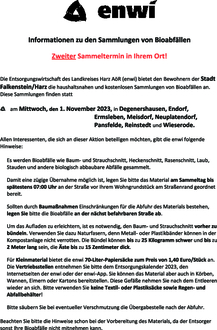 Falkenstein/Harz die haushaltsnahen und kostenlosen Sammlungen von Bioabfällen an.