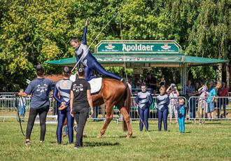 Auch das Gelände erstrahlte in einem sehr anschaulichen Glanze, unterstützt durch den Reitclub Reinstedt e. V., die lokalen Landwirte aus Ermsleben und Reinstedt sowie den Bauhof der Stadt. Nicht zu vergessen auch die Unterstützung der regionalen Vereine, wie den Vorharzer Oldtimer und Schlepperfreunden sowie ehrenamtlicher Helfer aus dem Ortsteil Reinstedt, u. a. beim Kassenpersonal und der FFW Reinstedt, die sich mit vollem Einsatz um die Parkplatzbetreuung und sicherheitsrelevante Themen kümmerten. Vergessen wollen wir auch nicht die Anwesenheit der Sportjugend im Kreissportbund Harz e. V. und tolle Unterstützung mit ihrem ehrenamtlichen Team beim Sport- und Fun-Mobil vor der großen Reithalle.