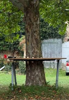 Das Weihnachtsmarkt-Team hat gebastelt: zwei große Sterne und ein wunderschöner Stehtisch sind entstanden.