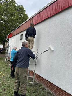 Die Kita-Eltern, Kinder, Omas & Opas, sowie die Erzieher Tim, Ines und Yvonne haben im Kindergarten fleißig gewerkelt – es wurde geschliffen, gestrichen, gepflanzt und geputzt.