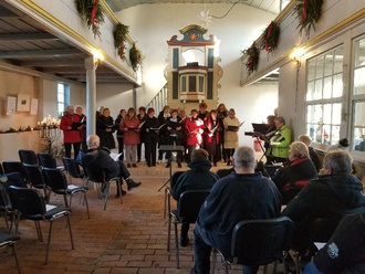Das Konzert konnte etwas zeitversetzt beginnen; da die neuen Chormitglieder unsere kleine Kirche erst finden mussten. Das Konzert begann mit den Volksweisen „Fröhliche Weihnacht überall“ und „Alle Jahre wieder“ unter der bewährten Leitung von Dirigent Herr Holger Kühne.Mit dem deutschsprachigen Adventslied „Maria durch ein Dornwald ging“; das aus dem Eichsfeld stammt und 1850 erstmals publiziert wurde, erklang ein christliches Adventslied. Auch das vielfach gecoverten Weihnachtslied „Marys Boy Child” von Jester Joseph Hairston (schon im Jahr 1956 komponiert) wurde zu Gehör gebracht.