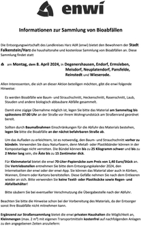 Falkenstein/Harz die haushaltsnahe und kostenlose Sammlung von Bioabfällen an. Diese