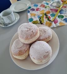 Die obligatorischen Pfannkuchen durften genauso wenig fehlen wie das Gläschen Eierlikör oder Bowle. Nachdem sich alle gestärkt hatten, ging es in einer Polonaise durch den Saal.