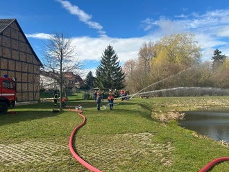 Die Jugendfeuerwehren, der Stadt Falkenstein/Harz, trafen sich am Samstag, den 16.03.2024, zum ersten gemeinsamen Ausbildungstag des Jahres. Die Jugendlichen aus den verschiedenen Orten kamen in Pansfelde zusammen, um den Tag zu verbringen. Zu Beginn der Veranstaltung wurden sie von ihrem Stadtjugendwart Andreas Kleimeyer in Empfang genommen. Er erklärte seinen Schützlingen, was sie am heutigen Tag erwarten sollte. Die Jugendwarte hatten sich für diesen Tag vier Stationen überlegt, die alle in dem kleinen Örtchen verteilt waren. Dabei waren eine Station an der Drehleiter, sowie eine Wasserentnahmestelle am Teich mit simulierten Flächenbrand. Besonders aufregend war es an den letzten beiden Stationen. Am Gerätehaus hatten sich die Malteser aus Ballenstedt eine Station aufgebaut, um mit den Kindern erste Hilfe Einsätze zu üben und gingen dabei auf verschiedene Szenarien ein, bei denen sie als Feuerwehrleute dazukommen konnten, beispielsweise ein Motorradfahrer, der die Kontrolle über sein Gefährt verloren hatte, gestürzt ist und nun bewusstlos am Boden lag, wobei in diesem Falle der Fahrer eine Übungspuppe war. Aber auch Arm- und Beinbrüche, Quetschungen oder Amputationen wurden von den Kindern gekonnt verarztet. Des Weiteren wagten sie einen Blick in das Innere eines Krankenwagens, um sich die Ausstattung anzusehen aber auch um an einem EKG zu testen, wie schnell ihr Herz im Moment schlug oder wie es sich anfühlte in einer Vakuummatratze zu liegen. Ein weiteres Highlight für die Jugendlichen war, dass sie zum ersten Mal mit dem Boot der Wasserwehr auf hoher See fahren durften, oder zumindest auf dem Teich der in Richtung Molmerswende lag. Dort lernten sie, wie die Feuerwehr vorging, wenn sie eine vermisste Person im Gewässer suchten. Manche der Kinder stellten fest, wie seetauglich sie waren oder eben auch nicht. Für Verpflegung wurde natürlich auch gesorgt, denn zum Mittag gab es Gehacktesstippe mit Kartoffeln und sauren Gurken. Hierzu sagten auch die Erwachsenen nicht Nein. Wir möchten uns vor allem bei den Maltersern aus Ballenstedt bedanken sowie bei der Wasserwehr für die Unterstützung.