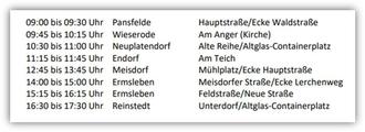 Geplanter Zusatztermin des Schadstoffmobils in Ermsleben: