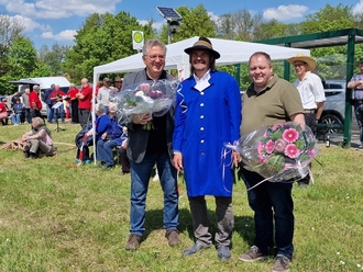 Nun konnten die Zuschauer miterleben und erahnen, wie anstrengend und anspruchsvoll dieses Mähen mit der Sense ist und was die Landwirtschaft den Menschen in früheren Zeiten abverlangte. Nach einer weiteren Gesangseinlage des Männerchors fand dann die Siegerehrung statt. Wie schon im Vorjahr konnte Manfred Ketzer aus Pansfelde den Sieg für sich beanspruchen. Er verwies Felix Büttner aus Alterode auf den zweiten bzw. Stefan Knoche aus Reinstedt auf den dritten Platz. Bei den Damen erreichte Sarah Schwandt aus Welbsleben den ersten und Stefanie Koch aus Endorf den zweiten Platz. Eine Hochachtung den mutigen Frauen! In der Mannschaftswertung belegten Felix Büttner, Stefan Knoche und Michael Damm das Siegertreppchen.