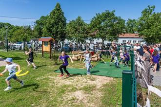 Im Anschluss traten die Tanzkinder vom SV Germania Meisdorf auf. Dann übernahm es der Spielmannszug, die großen und kleinen Gäste, allen voran die Sponsoren und Ehrengäste, hinüber zum Spielplatz zu begleiten. Hier wurde symbolisch das Band vom Bürgermeister der Stadt Falkenstein/Harz, Rico Röse, von Ortsbürgermeister Ralf Bianga, von der Vorsitzenden des Kinderfördervereins, Katja Bianga, und vom Hauptsponsor Ingo Jung durchschnitten. Ein Kind (mein Enkel) hatte es ganz besonders eilig, nutzte ein kleines Schlupfloch um als erstes zum Bagger zu kommen. Danach wurde die Tür weit geöffnet und der Kinderspielplatz von den anwesenden Kindern stürmisch in Besitz genommen. Die Kinder waren gut aufgehoben, viele Erwachsene zog es zurück auf die Wiese vor dem Schützenhaus. Hier saß man gemütlich bis zum frühen Nachmittag beisammen und lauschte den Liedern der Dorfcombo. Ganz nach dem Motto „viele Hände, schnelles Ende“ fassten dann alle noch Anwesenden mit an, klappten Tische und Bänke zusammen, die weggefahren wurden. Im Schützenhaus wurde das letzte Geschirr abgewaschen und alles zusammen geräumt. Nichts erinnerte mehr an das tolle Fest, was zuvor hier stattfand. Einzig der Spielplatz, er kann weiter genutzt werden. Jeden Morgen wird die Tür geöffnet und jeden Abend wieder verschlossen, in der Hoffnung, dass der Spielplatz uns lange in dem Zustand erhalten bleibt, wie er heute übergeben worden ist.