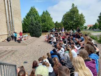 Am 1. Juni fand an der Sekundarschule „Ludwig Gleim“ anlässlich des Internationalen Kindertages ein Spaß- und Spielsportfest statt. Teilnehmer waren die Klassenstufen 5 bis 7 und die Grundschüler. Die Sekundarschüler sollten 7 Sport- und 7 Spaßstationen durchlaufen. Jeder war für seinen Laufzettel selbst verantwortlich und konnte die Reihenfolge seiner Stationen frei wählen. Die Schüler von Team 9 haben die Stationen aufgebaut und betreut. Außerdem gab es eine Frühstücksversorgung mit Würstchen, Brötchen, Kuchen und Tee sowie Musik. Auch der Eiswagen kam auf den Schulhof. Am Ende des Sportfestes wurden die Laufzettel in eine Glücksbox gesteckt und die Schüler der Sekundarschule konnten tolle Preise gewinnen.