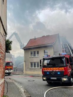 Am 07.06.2025 wurde die Freiwillige Feuerwehr Ermsleben gemeinsam mit den Feuerwehren Endorf und Reinstedt durch die Integrierte Leistelle des Landkreises Harz um 10:46 Uhr zu einem Mittelbrand in einem Wohnhaus in der Ortslage Ermsleben alarmiert. Weiterhin wurden die Feuerwehren Pansfelde und Meisdorf mit weiteren Atemschutzgeräteträgern sowie die Feuerwehr Ballenstedt mit einem zweiten Hubrettungsgerät zum Einsatz hinzugezogen. Als die ersten Kräfte der Freiwilligen Feuerwehr Ermsleben am Einsatzort eintrafen, stand das Wohnhaus bereits im Vollbrand. Aufgrund dessen wurde durch den Einsatzleiter entschieden, das Einsatzstichwort auf B3 zu erhöhen und zur weiteren Unterstützung durch einen Stadtalarm alle Ortswehren der Stadt Falkenstein/Harz sowie die Feuerwehr Aschersleben mit einem Löschzug zum Einsatzort zu alarmieren. Durch die gute Zusammenarbeit aller im Einsatz befindlichen Kräfte konnte durch eine Riegelstellung ein Übergreifen des Feuers auf benachbarte Wohnhäuser verhindert werden. Die Bundesstraße 185 musste aufgrund der Löscharbeiten für ca. 6 Stunden voll gesperrt werden. Dieser Einsatz machte einmal wieder deutlich, wie gut die Zusammenarbeit verschiedener Wehren funktioniert. Im Einsatz waren 92 Einsatzkräfte mit 19 Einsatzfahrzeugen sowie Polizei, Rettungsdienst, das Ordnungsamt der Stadt Falkenstein/Harz und der Bürgermeister Rico Röse. Bedanken möchten wir uns bei allen Einsatzkräften sowie der „Reserveabteilung“ der Freiwilligen Feuerwehr Ermsleben, welche im Gerätehaus Ermsleben die Verpflegung der Einsatzkräfte sicherstellte.