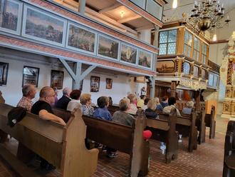 Vertraute Gesichter in fröhlicher Runde, eine gute Tasse Kaffee (oder zwei) unterm Lindenbaum an der Sixtuskirche, Kuchen vom Feinsten dazu – das tut gut. Etwa vierzig Menschen aus Ermsleben und der Umgebung saßen am 18. August, einem Freitagnachmittag, zusammen und ließen es sich gut gehen. Manche trauten sich auf den Kirchturm und staunten über die mächtigen Balken und alten Inschriften. Ein herrlicher Blick aus den Turmfenstern auf die Stadt und die heimatlichen Wiesen und Felder belohnte den Wagemut.